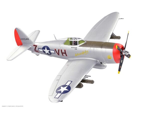 Wir präsentieren die Republic P-47 Thunderbolt, ein beeindruckendes Kampfflugzeug, das während des Zweiten Weltkriegs unter den United States Army Air Forces hervorragende Dienste leistete. Mit einem Gewicht von bemerkenswerten acht Tonnen bei voller Beladung war sie eines der schwersten Jagd- und Bodenangriffsflugzeuge ihrer Zeit. Die P-47 Thunderbolt war für ihre Bodenangriffsfähigkeiten bekannt und trug M8-Raketenbehälter und eine beeindruckende Nutzlast von 2500 Pfund Bomben.