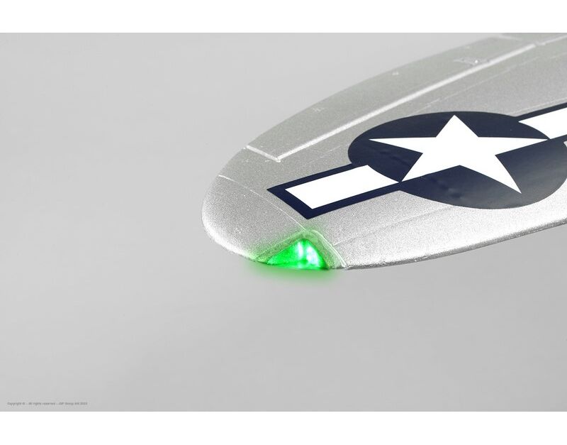 • Panel-Linien, LED-Lichter und eine bemalte Pilotenfigur.