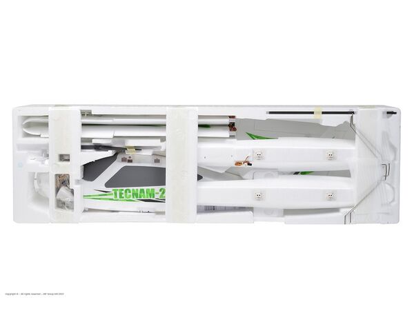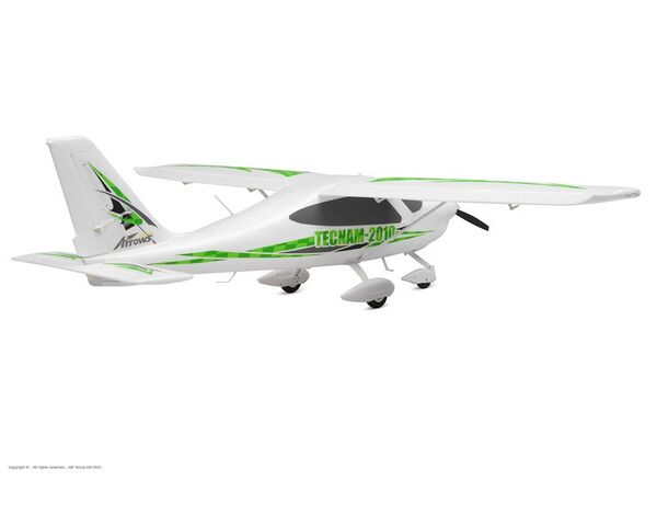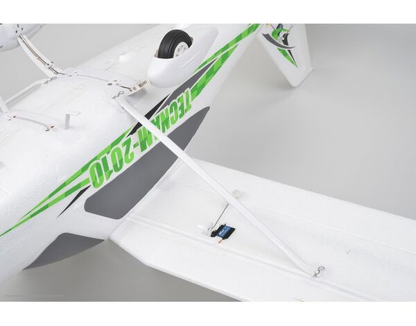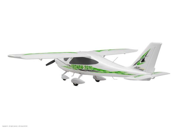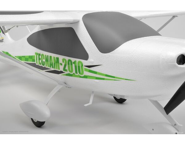 Der Tecnam-2010 ist aus strapazierfähigem EPO-Material gefertigt und mit robusten Flügelstreben aus Kunststoff ausgestattet. Das Wechseln der Batterien ist dank der verriegelbaren Batterieabdeckung problemlos möglich. Das Flugzeug verfügt außerdem über funktionale Klappen, ein stoßdämpfendes Fahrwerk aus Metall, helle Navigationslichter und ein Schraubsystem (außer der Antenne).