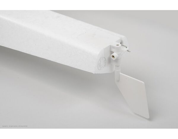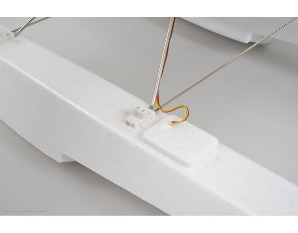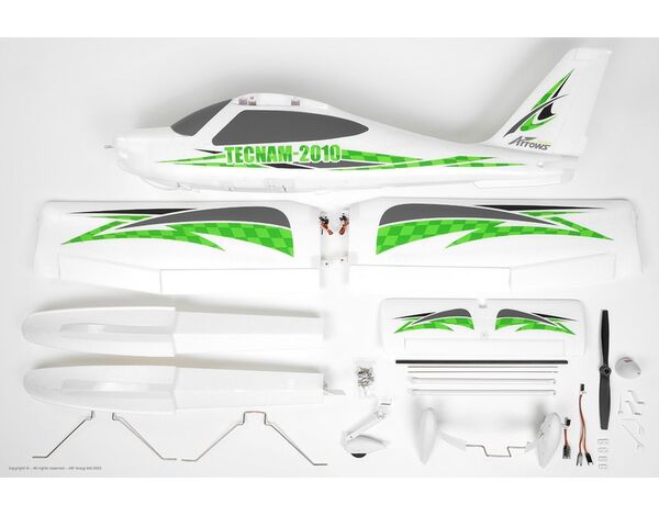 Der Tecnam-2010 ist aus strapazierfähigem EPO-Material gefertigt und mit robusten Flügelstreben aus Kunststoff verstärkt, so dass er den Strapazen des Flugbetriebs standhält. Das Wechseln der Batterien ist dank der verriegelbaren Batterieabdeckung ein Kinderspiel.