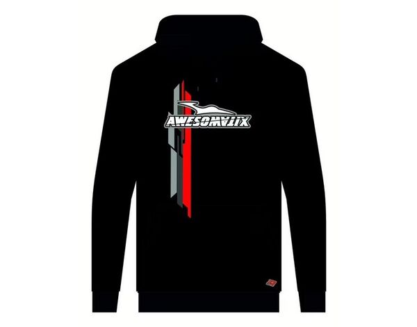 Lässiger, schwarzer Hoodie mit dem klassischen Awesomatix Logo auf der Brust.