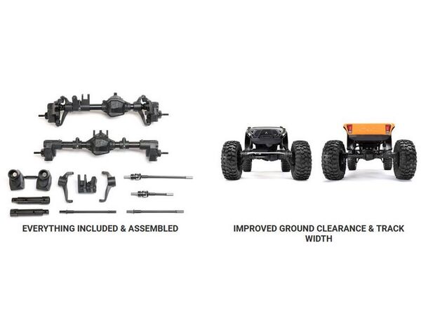 Das Pro-Portal-Achsen-Kit wird komplett mit einer vollständig montierten, lenkbaren Portalachse und einer starren hinteren Portalachse geliefert. Für eine schnelle und einfache Installation an deinem Axial SCX10 Pro sind Hardware und Anweisungen im Lieferumfang enthalten.