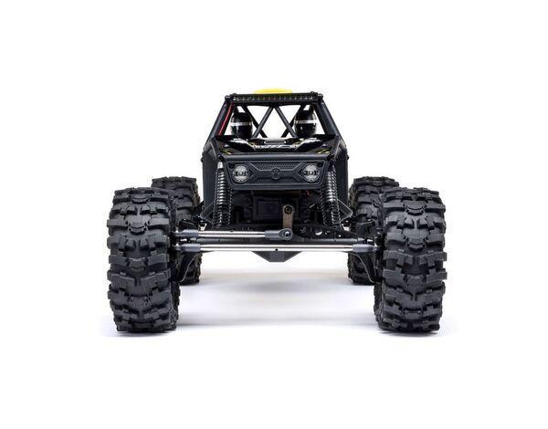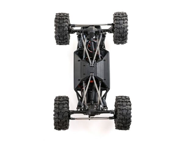 Durch das Rohrrahmenchassis sieht der Capra nicht nur aus wie ein echter Trail Buggy, sondern ist auch hinsichtlich Federung und Reifenfreiheit optimiert. Lizenzierte Currie F9 Portalachsen erhöhen auch die Bodenfreiheit und sind mit vorbildgetreuen Pro-Line OE Holcomb 1.9 Felgen und Pro-Line OE Mickey Thompson Baja Pro X-Reifen ausgestattet. Die Reifen sind mit ihrem aggressiven Profil der Konkurrenz haushoch überlegen. Zweistufige, offenzellige Schaumstoffeinlagen sind im Lieferumfang enthalten, mit weichem Außenschaum und festem Innenschaum zur Verbesserung des Grips und des Seitenwandhalts. Beide Achsen verfügen über Metall-Universalgelenke für einen reibungslosen, effizienten und langlebigen Antriebsstrang.