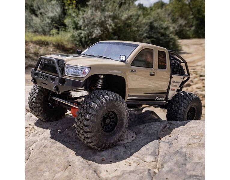 Die 7 Zoll großen, offiziell lizenzierten Falken Wildpeak M/T-Reifen sind aus einer Gummimischung für höchste Traktion hergestellt und verfügen über ein aggressives Profil. Sie bieten hervorragenden Grip und Bodenfreiheit auf Staub, Felsen und anderen Offroad-Oberflächen für grenzenloses Crawlen und Climben.