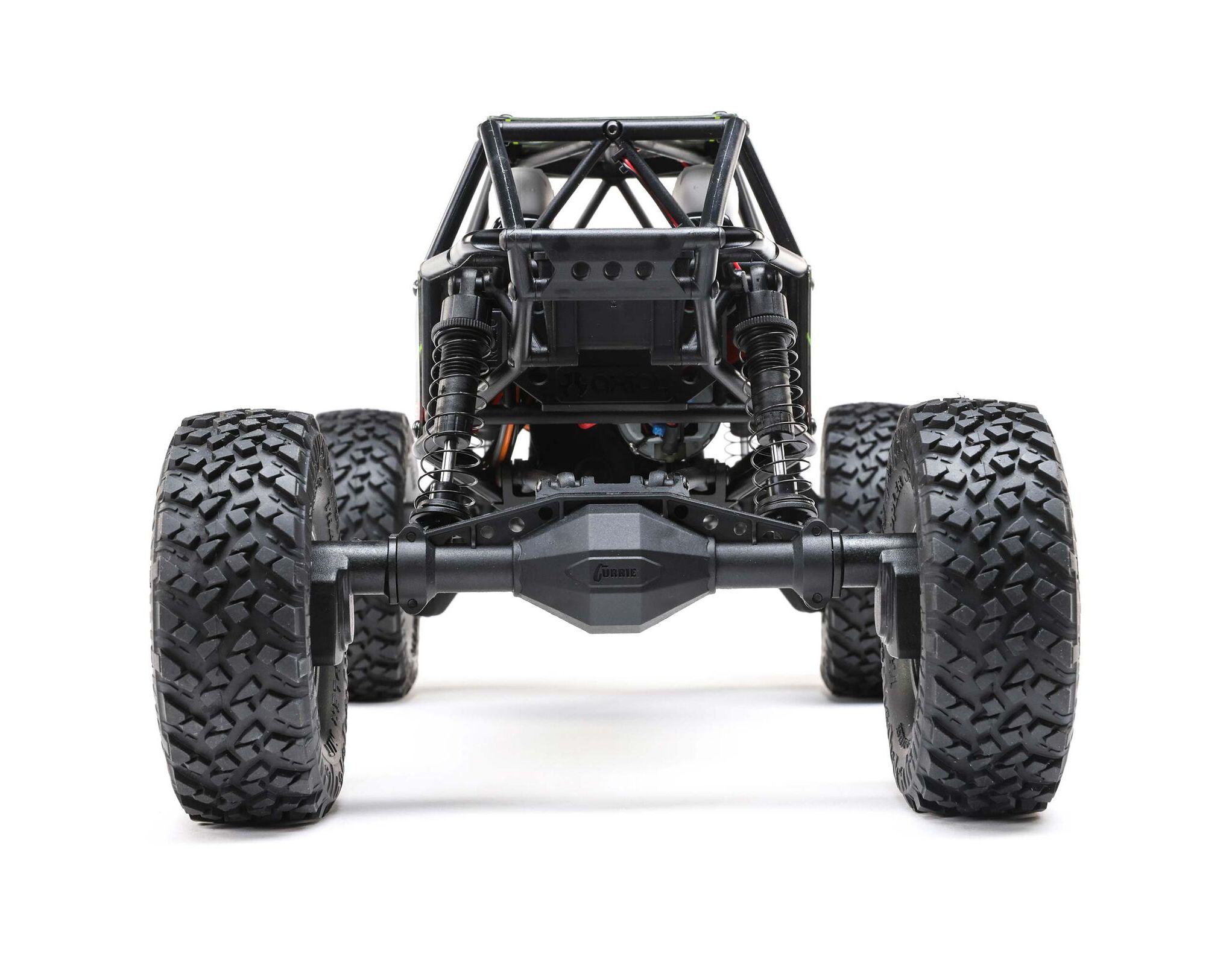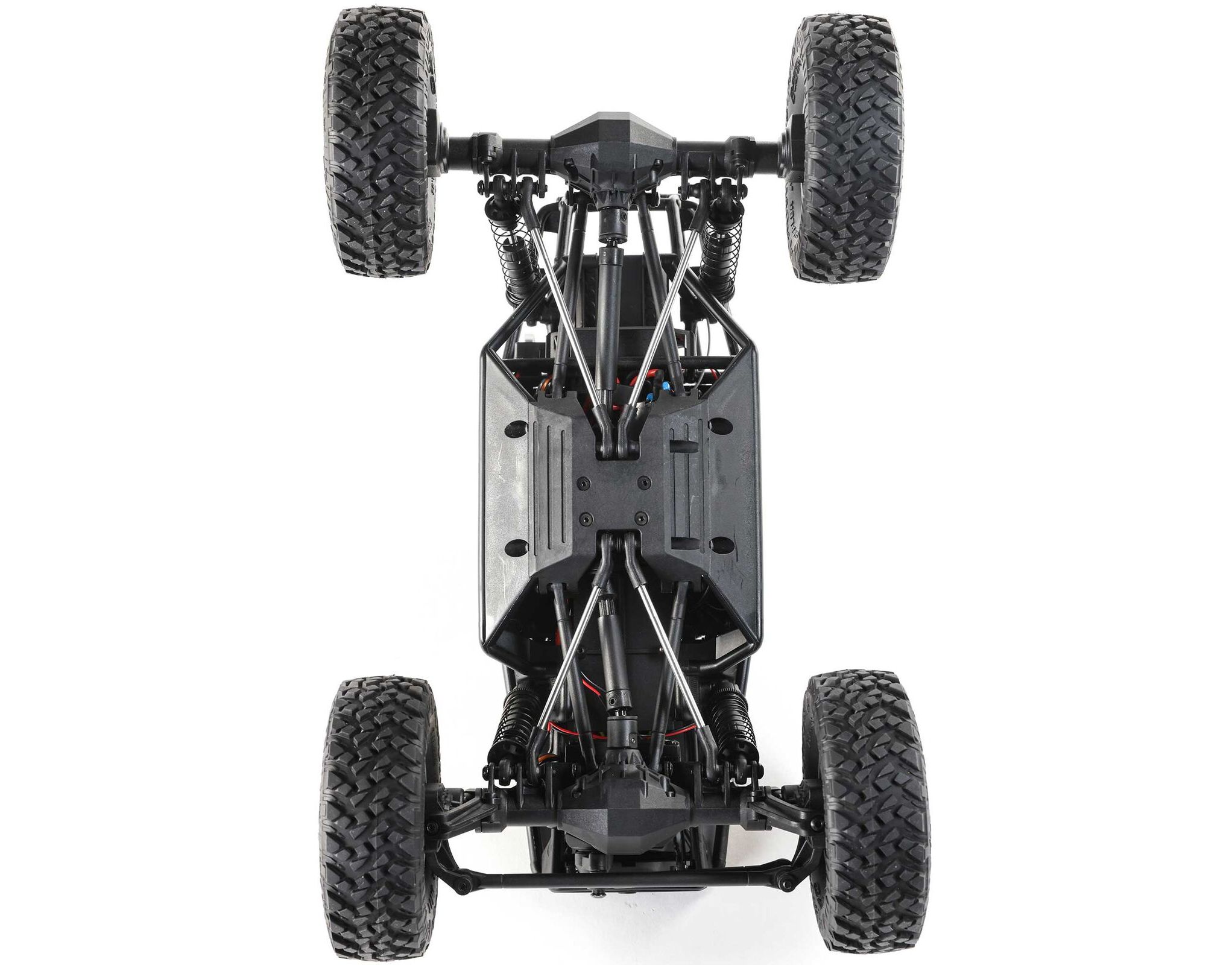 Der UTB18 ähnelt im Design dem beliebten Axial Capra 1.9 4WD Unlimited Trail Buggy im Maßstab 1:10 und verfügt über ein verkleinertes Capra-Rohrrahmen-Chassis. Wie der größere Trail-Buggy verfügt auch der UTB18 über Portalachsen, die für zusätzliche Bodenfreiheit beim Manövrieren sorgen. Zusammen mit dem an der Achse montierten 1:10 Low-Profile-Servo für eine schnelle, starke Lenkung und dem langlebigen 4-Lenker-Aufhängungssystem ist der UTB18 bereit zu beweisen, dass man Crawler-Performance nicht anhand der Größe beurteilen kann.