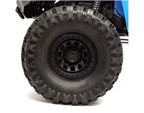 Offiziell lizenzierte Black Rhino-Räder sorgen für ein maßstabsgetreues Aussehen. Die mit dem SCX10™ III Base Camp™ 4WD gelieferten Falken Wildpeak-Reifen in R35-Mischung bieten eine gute Bodenfreiheit und einen sicheren Halt auf Staub, Steinen und allen anderen Offroad-Oberflächen.