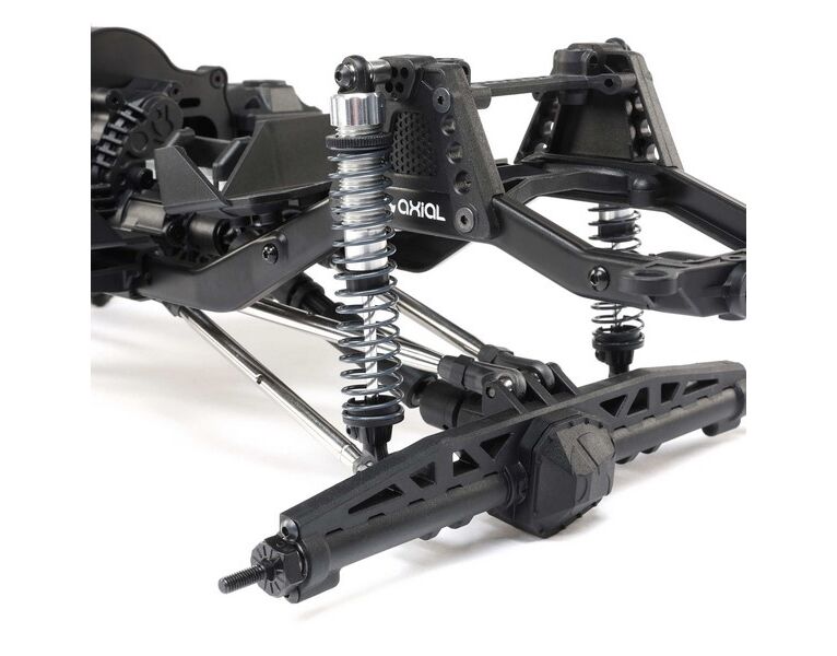 AXI03011 Axial CRAWLER BASE CAMP 1:10 4WD KIT SCX10 III OHNE Ladegerät & Akku Das SCX10 III Base Camp Builder's Kit ist nicht nur eine nicht vormontierte Version der RTR Version, sondern bietet viele Anpassungsmöglichkeiten sowie ein Dig-Getriebe, Standardachsen und andere Ergänzungen. Es lässt sich leicht auf der Werkbank aufbauen und bietet auf Trails eine solide Leistung. Key Features Stabiles, verstellbares SCX10 III-Stahl-C-Profil-Chassis Standardmäßige AR45-Starrachsen LCXU-Getriebe mit optionaler Dig-Funktion Robuste 6-mm-Edelstahl-Links Ganzmetall-Kugelköpfe In The Box (1) 1/10 SCX10 III Base Camp 4WD Rock Crawler Builders Kit (1) 1/10 SCX10 III Base Camp Builders Kit Anleitung Needed to Complete (1) Fernsteuerung & Empfänger (1) Motor & Fahrtenregler (1) Lenkservo (1) 12.3 WB Rock Crawler Body (1) Rock Crawler Felgen & Reifen (1) Akku (1) Ladegerät 1/10 SCX10 III Base Camp 4WD Rock Crawler Builder's Kit Funktionen Stabiles, verstellbares SCX10 III-Stahl-C-Profil-Chassis Standardmäßige AR45-Starrachsen LCXU-Getriebe mit optionaler Dig-Funktion Robuste 6-mm-Edelstahl-Links Ganzmetall-Kugelköpfe Schwarze Differentialabdeckungen Ganzmetallgetriebe Abstimmbare, ölgefüllte Stoßdämpfer Rundum kugelgelagert Passt zu einer Vielzahl unterschiedlicher Karosserien Übersicht Der SCX10 ist seit langem die RC-Plattform der Wahl für Scale-Trail-Enthusiasten. Im Jahr 2022 stellte Axial den SCX10 III Base Camp 4WD RTR vor und gab kostenbewussten Crawling-Fans die Möglichkeit, sich an seiner Leistung und seiner Vorbildähnlichkeit zu erfreuen. Jetzt gibt es eine neue Möglichkeit, SCX10-basierte Abenteuer zu erleben – das SCX10 III Base Camp Builder's Kit. Der Aufbau eines Kits ist Teil des Hobbys, und eignet sich perfekt für Axial-Enthusiasten, von denen viele leidenschaftlich daran schrauben und ihre Rigs modifizieren. Es gibt keinen besseren Ausgangspunkt für dein Crawler Abenteuer als das Base Camp Kit. Es handelt sich um eine klassische Crawler Plattform, die über eine Fülle bewährter Innovation in der bekannten Axial Qualität verfügt. Die Vorteile des Base Camp Kits gehen weit darüber hinaus, die Komponenten für dein eigenes Rig zusammenzustellen. Die Montage macht dich zu einem Experten für die Technik und einem Profi für Wartung und Reparaturen. Du kannst deiner Kreativität auch Ausdruck verleihen, indem du eine Karosserie wählst, die dir gefällt, und sie nach deinen Vorstellungen verfeinerst. Ergänze nach deinen persönlichen Vorlieben Reifen, Räder und Elektronik und baue dir deinen personalisierten Crawler auf. Im Vergleich zum Kauf eines komplett ausgestatteten RTR-Rigs stellt das Kit sicher, dass du nichts kaufst, was du möglicherweise nicht verwendest. Besser noch: Das Base Camp Kit ist nicht nur eine unmontierte Version des Axial RTR-Rigs. Es ist ein verbesserter Base Camp. Das Getriebe kann im Standard-Allradantrieb extern verriegelt werden, verfügt aber auch über eine optionale, servogesteuerte Dig-Funktion. Im Lieferumfang sind robuste 6-mm-Edelstahl-Links sowie gerade Standard-AR45-Achsen enthalten. Wenn du Portalachsen bevorzugst, erleichtert das LCXU-Getriebe den Wechsel. Das Axial SCX10 III Base Camp Builder's Kit bietet dir die perfekte Grundlage für dein Abenteuer – das bewährte SCX10 III-Stahl-C-Profil-Chassis, eine optimierte Federung und Lenkung sowie einen geländetauglichen Antriebsstrang. Wenn du die Karosserie, die Reifen, die Räder und die Elektronik deiner Wahl hinzufügst, erhältst du ein Fahrzeug, das ganz nach deinen Vorstellungen entstanden ist. SCX10™ III STAHL-C-PROFIL-CHASSIS SCX10™ III STAHL-C-PROFIL-CHASSIS Die Steifigkeit des C-Profil-Chassis des SCX10™ III Base Camp 4WD reduziert die Durchbiegung des Leiterrahmens und erhöht die Präzision der Aufhängungsbewegung. Er lässt sich ebenso für eine Vielzahl von Karosserien anpassen (optionale Links benötigt) LCXU DIG-GETRIEBE LCXU DIG-GETRIEBE Das LCXU-Getriebe des Kits kann im Standard-Allradantrieb extern blockiert werden, verfügt aber auch über eine optionale, servogesteuerte Dig-Funktion für verbessertes Wenden und bessere Kontrolle. GANZMETALLGETRIEBE GANZMETALLGETRIEBE Zusätzlich zu den Ganzmetall-Innenzahnrädern für Stabilität und Haltbarkeit verfügt das LCXU-Getriebe auch über einen vollständigen Satz Kugellager für eine reibungslose und effiziente Fahrt. AR45 STANDARDACHSEN AR45 STANDARDACHSEN Das Kit enthält Standard-AR45-Starrachsen, die dem entsprechen, was bei den meisten Off-Road-Vorbildern zu finden ist. Das LCXU-Getriebedesign ermöglicht bei Bedarf auch den einfachen Wechsel von Standardachsen auf Portalachsen. OPTIMIERTE FEDERUNG OPTIMIERTE FEDERUNG Die Aufhängung verfügt über 6-mm-Edelstahl-Links und Metall Kugelköpfe für Haltbarkeit im Gelände. Die abstimmbaren, ölgefüllten Stoßdämpfer verfügen über Aluminium-Gewindekörper und eine einzelne Schraubenfeder. METALL KUGELKÖPFE METALL KUGELKÖPFE Alle Aufhängungspunkte verfügen sich auf Edelstahlkugeln, die eine langlebigkeit bieten. PANHARD-HALTERUNG AUS METALL PANHARD-HALTERUNG AUS METALL Die Metall-Panhard-Halterung wird normalerweise als Upgrade betrachtet und ist als Standardteil im SCX10 III Base Camp Builder's Kit enthalten. Produkt Eigenschaften Power TypeElectric Gear Pitch32-Pitch Ball BearingsComplete Vehicle ChassisAdjustable Steel C-channel Completion LevelKit Drivetrain4WD Wheel Hex Size12mm RadioSold Separately Product WeightVaries depending on components used Vehicle TypeRock Crawler Final Drive Ratio45.6:1 Wheelbase12.3" (312 mm) BatterySold Separately Ground ClearanceVaries depending on tires used Steering Type2WS SuspensionMulti-Link Solid Axle BodySold Separately BrakesIntegral with ESC Pinion14T Scale1/10 ChargerSold Separately ReceiverSold Separately