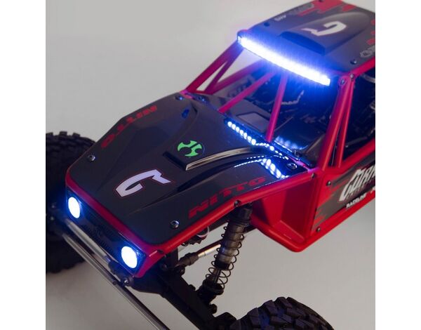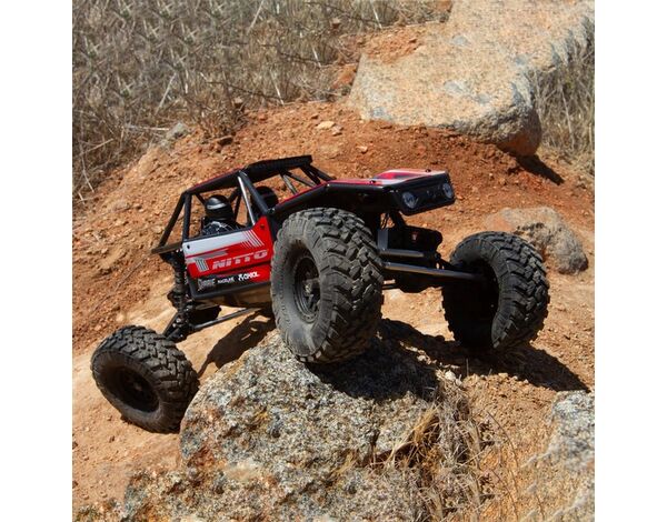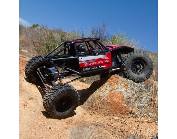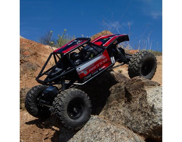 Der Capra™ 1.9 4WS Unlimited Trail Buggy enthält größere, lizenzierte Nitto Trail Grappler M/T-Reifen, die die Bodenfreiheit erhöhen und gleichzeitig eine breitere Reifenfläche für mehr Traktion bieten, wo auch immer du crawlst – auf einem Trail, einer Wettbewerbsstrecke oder einem Hinterhof-Crawl-Kurs. Die Reifen sind auf lizenzierten Raceline-Spritzgussrädern mit einem 3-teiligen Beadlock-Design montiert, um die Reifen leicht entfernbar und auszutauschbar zu machen.