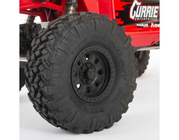 Der Capra™ 1.9 4WS Unlimited Trail Buggy enthält größere, lizenzierte Nitto Trail Grappler M/T-Reifen, die die Bodenfreiheit erhöhen und gleichzeitig eine breitere Reifenfläche für mehr Traktion bieten, wo auch immer du crawlst – auf einem Trail, einer Wettbewerbsstrecke oder einem Hinterhof-Crawl-Kurs. Die Reifen sind auf lizenzierten Raceline-Spritzgussrädern mit einem 3-teiligen Beadlock-Design montiert, um die Reifen leicht entfernbar und auszutauschbar zu machen.