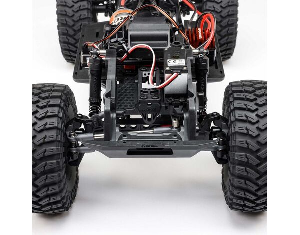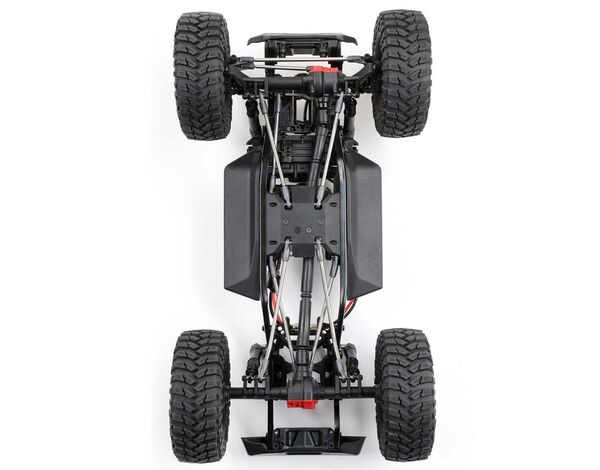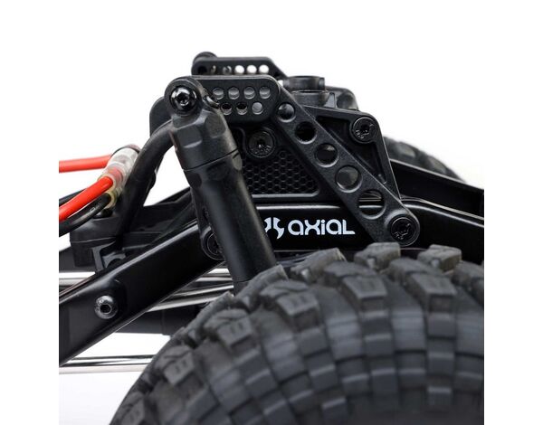 Doch der Coyote ist weit mehr als nur ein SCX10 III mit neuem Look. Axial hat seine bewährte Plattform im Maßstab 1:10 auf ein neues Level gehoben. Neue, ölgefüllte Stoßdämpfer und Stoßdämpferbrücken bieten mehr Einstellmöglichkeiten. Overdrive-Gänge an der Vorderachse verbessern die Wendigkeit und Kletterfähigkeit, um auch schwierige Passagen zu meistern. Neue Seitenschweller mit glatter Unterseite sorgen für bessere Performance und eine optimale Passform der Karosserie. Offiziell lizenzierte Maxxis Trepador Reifen und KMC Grenade Felgen mit zweistufigen Schaumstoffeinlagen verleihen dem Rig nicht nur ein realistisches Aussehen, sondern auch erstklassige Crawling-Eigenschaften. Die neue Akkuhalterung ermöglicht die Platzierung des Akkus vor dem Getriebe, was die Gewichtsverteilung und Balance verbessert.