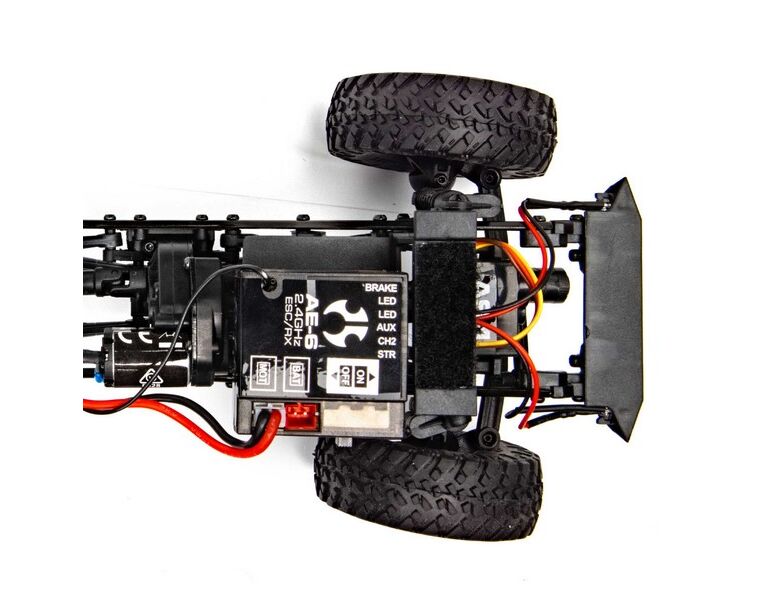 Selbst in diesem kleinen Maßstab liefert die Kombination aus Federbeinen mit angedeuteten Dämpfergehäusen und haltbaren Aufhängungspunkten aus Verbundwerkstoff die Crawl-Leistung, die du von einem Axial®-Fahrzeug erwartest.