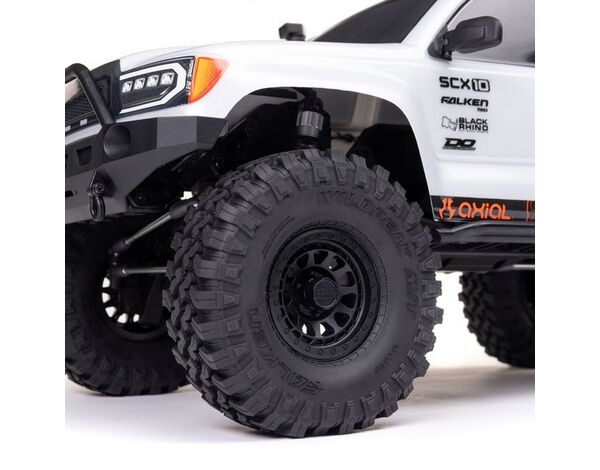 Hohe, offiziell lizenzierte Falken Wildpeak-Reifen bieten gute Bodenfreiheit und sicheren Halt auf Schmutz, Steinen und allen anderen Offroad-Oberflächen. Sie sind auf offiziell lizenzierten, einteiligen Black Rhino-Felgen montiert, um den Scale-Look noch weiter zu betonen.