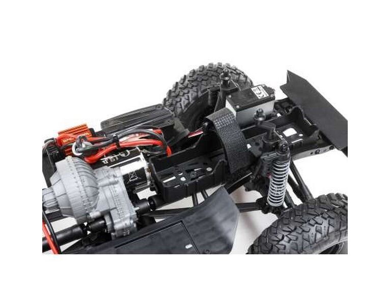 So wie bei einem ausgewachsenen Truck das Lenkgetriebe am Rahmen angeordnet ist, platziert Axial® die verstellbare Servohalterung des Deadbolt am Fahrgestellrahmen des SCX10 II und ermöglicht die Verwendung einer Vielzahl von Servos. Kreuzgelenkachsen ermöglichen Lenkwinkel von bis zu 45° und sorgen für einen effizienten, leistungsstarken Antriebsstrang. Die einteilige AR44™-Vorder- und Hinterachse verfügen über einen geformten Träger für extreme Haltbarkeit. Das Ritzel ist 6 mm über der Mitte für eine größere Bodenfreiheit und verbesserte Antriebswellenwinkel. Dog Bones aus Metall und spiralförmig geschnittene Zahnräder gehören zur Standardausstattung, und der Antriebsstrang umfasst im kompletten Fahrzeug hochwertige Kugellager.