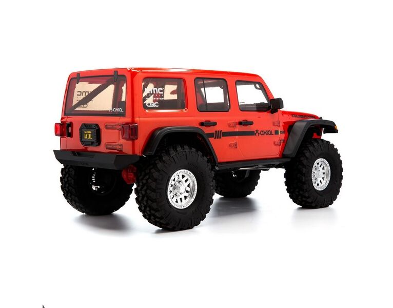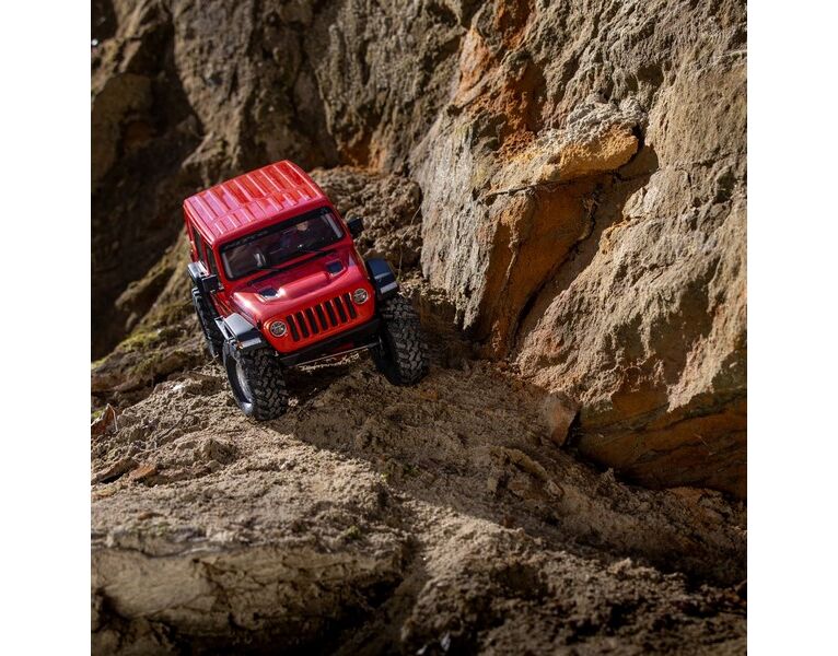 The chassis is topped off with a Jeep® Wrangler Unlimited four-door body that includes a roll cage, front hood vents and cowl, windshield wipers, mirrors, door handles and other molded-in details, plus a detailed interior and LED lighting. New taller and wider, officially licensed Nitto Trail Grappler tires on 3-piece beadlock wheels add more scale realism and more grip on dirt, rocks, and all other off-road trails.