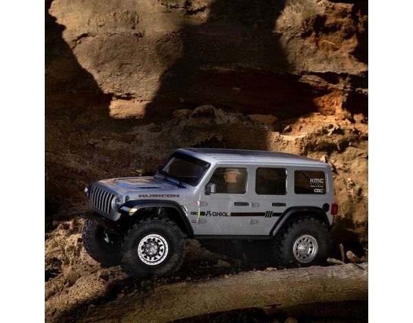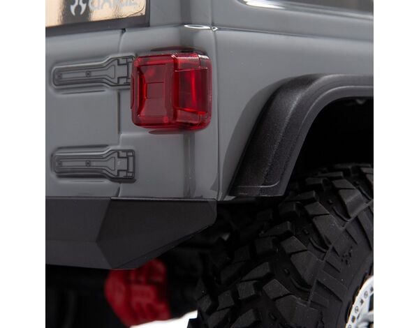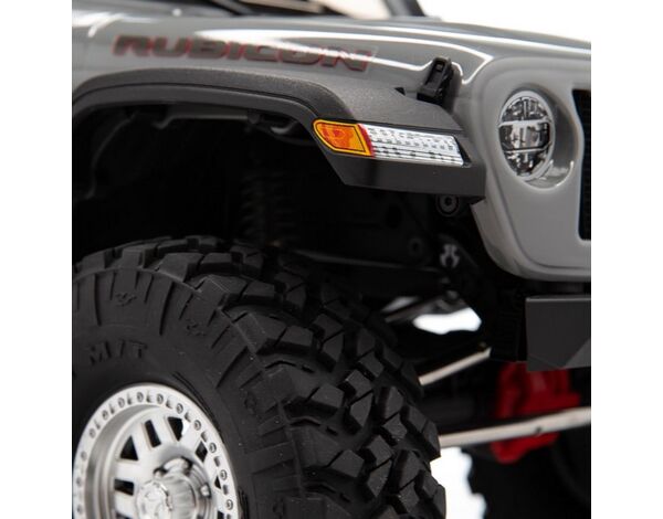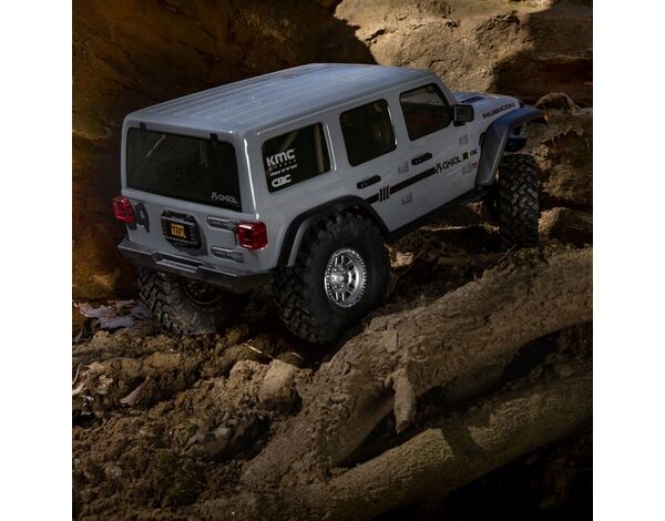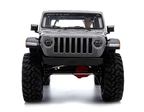 The chassis is topped off with a Jeep® Wrangler Unlimited four-door body that includes a roll cage, front hood vents and cowl, windshield wipers, mirrors, door handles and other molded-in details, plus a detailed interior and LED lighting. New taller and wider, officially licensed Nitto Trail Grappler tires on 3-piece beadlock wheels add more scale realism and more grip on dirt, rocks, and all other off-road trails.