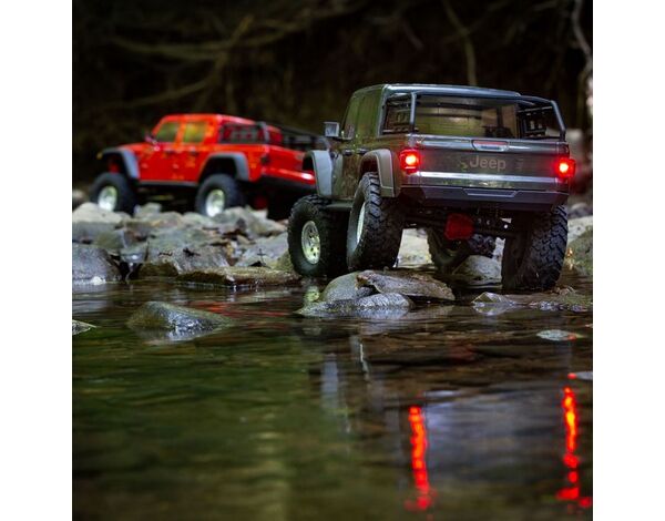 Der Scale Jeep® JT Gladiator spiegelt sein Gegenstück in Originalgröße mit vielen authentischen Details wider. Darüber hinaus verfügt die Karosserie über mehr als 20 Spritzgussteile, darunter eine Bettablage, Türgriffe, Spiegel, Lüftungsschlitze für die Motorhaube und vieles mehr, um den Realismus der Polycarbonat-Karosserie auf die nächste Stufe zu heben.