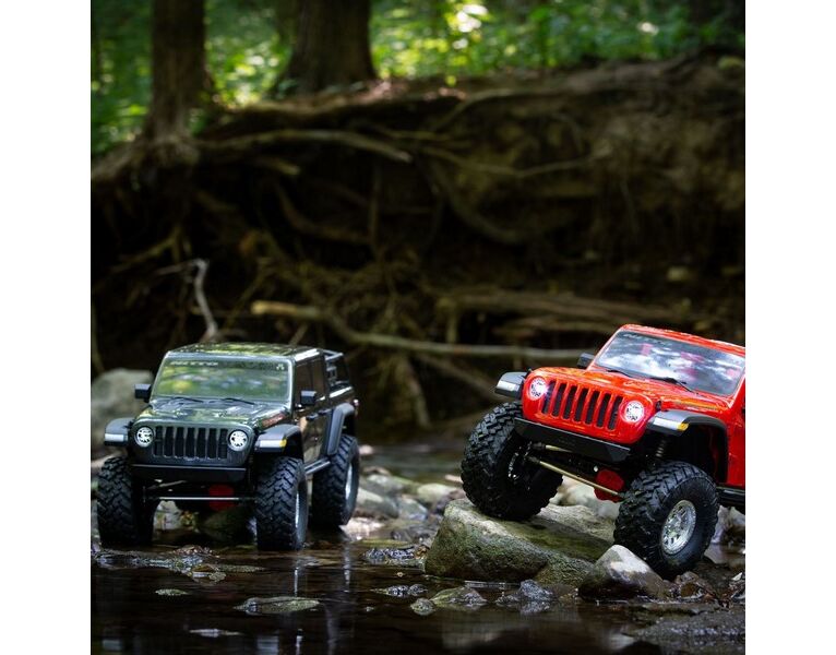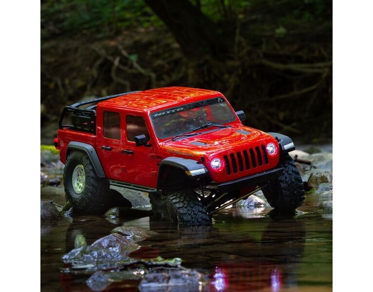 Abgerundet wird das Chassis durch eine Jeep® JT Gladiator-Karosserie, die das Original mit vielen äußerst authentischen Details widerspiegelt. Die Karosserie besteht aus über 20 Spritzgussteilen, darunter Türgriffe, Spiegel, Lüftungsschlitze und mehr, um den Realismus der Polycarbonat-Karosserie auf auf ein neues Niveau zu verhelfen. Die Karosserie wurde für einen realistischeren tiefen Ausbau in drei Teile geteilt. Offiziell lizenzierte Nitto Trail Grappler-Reifen auf dreiteiligen Beadlock-Rädern sorgen für mehr Realismus und mehr Grip auf Schmutz, Steinen und allen anderen Offroad-Strecken.