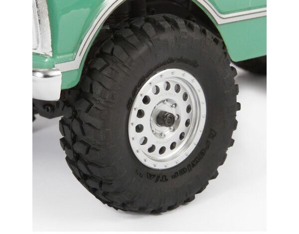 Mit seinem realistischen Leiterrahmen aus Stahl, den Vorder- und Hinterachsen aus Stahl und den stählernen Achsknochen bietet dieses Modell Crawler Leistung im Axial-Kaliber – sogar in 1/24. Er ist so konzipiert, dass er auf unebenen Wegen und harten Anstiegen immer richtig durchzieht. Der SCX24 ™ 1967 Chevrolet C10 wird einsatzbereit mit Elektronik, Sender, Empfänger, Servos, Motor, Regler, Akku und Ladegerät geliefert.