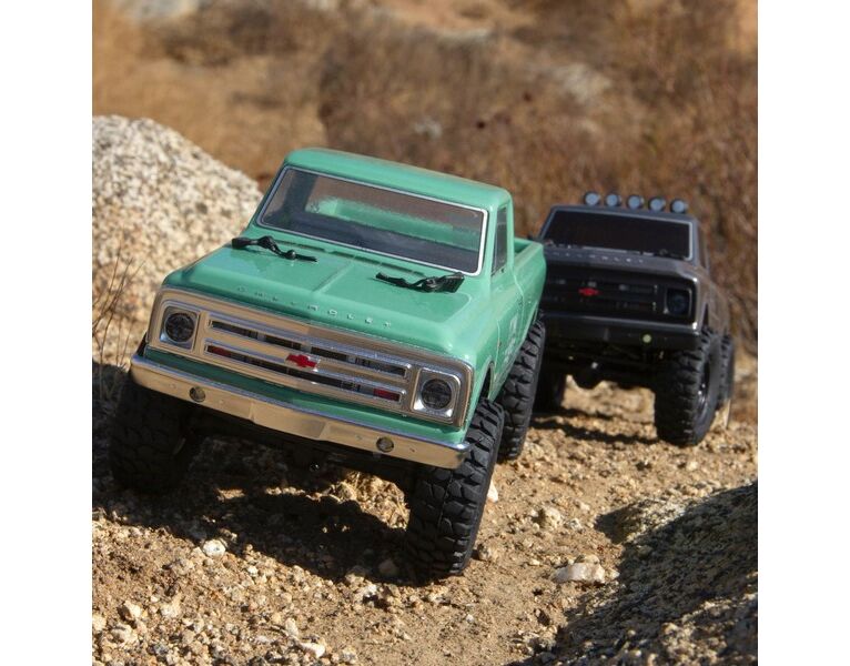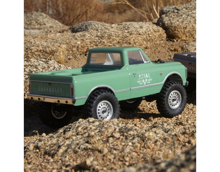 Eine weitere Axial® SCX24 ™ -Ausführung der Mikrofahrzeugserie mit einer klassischen 1967 Chevrolet C10-Karosserie. Vormontiert und mit LiPo-Akku, USB-Ladegerät und AA-Senderzellen ausgestattet, kann er überall eingesetzt zu werden.