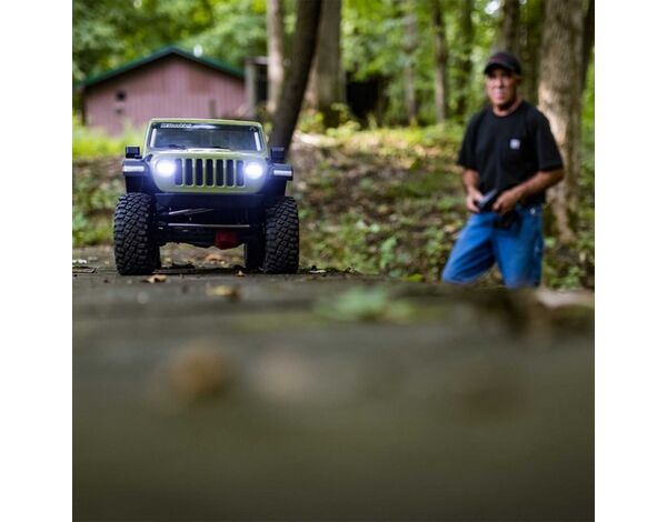Die Jeep® JLU Wrangler-Karosserie ist ein Spiegelbild ihres großen Vorbilds. Viele geformte Scale-Details Innen- und Außen werden selbst die anspruchsvollsten Jeep®-Enthusiasten zum Staunen bringen. LED-Scheinwerfer und Rückleuchten tragen zum Realismus nach Einbruch der Dunkelheit bei.