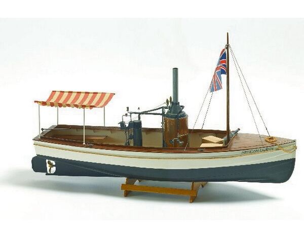 Der Bausatz enthält dem tiefgezogenen ABS-Kunststoffrumpf sowie detaillierte Attrappe einer Dampfmaschine mit stehendem Kessel. Alle Holzteile sind mit Laser präzise ausgeschnitten sowie alle zum Aufbau benötigten Holz-, Kunststoff- und Beschlagteile sind im Lieferumfang enthalten.