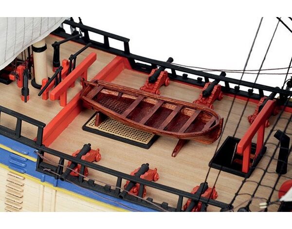 Reichhaltige Ausstattung durch den umfangreichen Einsatz der Gavurmöglichkeiten der modernen Lasertechnik erlauben es gute Baukasten zu attraktiven Preisen zu produzieren. Doppelte Rumpfbeplankung und viele Messingbeschlagteile machen diese Baukästen besonders werthaltig und die moderne Computergrafik macht die Anleitungsskizzen sehr klar und deutlich.