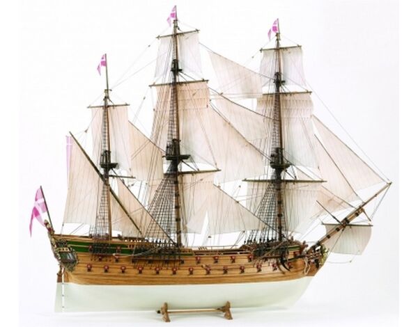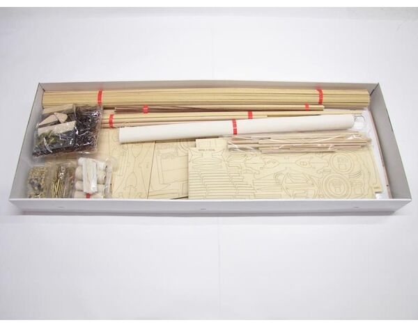 Der Baukasten ist in Spantenbauweise mit Laserstrahl sehr präzise hergestellt. Alle Verzierungen sind sehr sauber aus Kunststoff gefertigt und werden gold lackiert. Kanonenrohre und viele weitere Beschlagteile sind aus Messing.