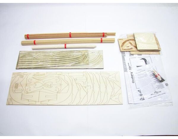 Kompletter Holzbaukasten mit Beschlagteilen auf klassischer Spantenbauweise aufgebaut. Alle Holzteile sind mit Laser präzise ausgeschnitten.