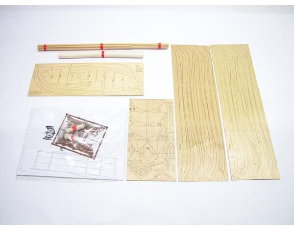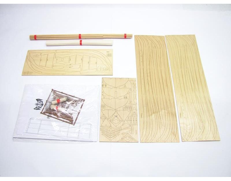 Kompletter Holzbaukasten mit Beschlagteilen auf klassischer Spantenbauweise aufgebaut. Alle Holzteile sind mit Laser präzise ausgeschnitten.