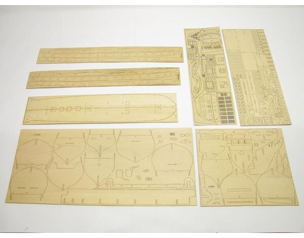 Kompletter Holzbaukasten mit Beschlagteilen auf klassischer Spantenbauweise aufgebaut. Alle Holzteile sind mit Laser präzise ausgeschnitten und die viele Messingbeschlagteile machen diesen Baukasten besonders werthaltig
