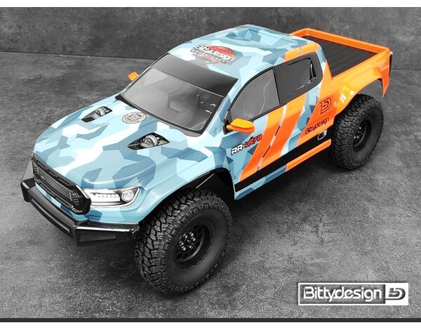 Die RR-Ultra Karosserie von Bittydesign bringt frischen Wind in die Welt der Rock Crawler. Basierend auf einem modernen Pickup-Design, kombiniert sie rennsportliche Ästhetik mit funktionalen Features. Verbreiterte Kotflügel bieten Platz für Reifen bis zu 106 mm Durchmesser, während das traditionelle Ladebett Raum für individuelles Zubehör oder einen Ersatzreifen schafft, um den realistischen Look zu unterstreichen.
