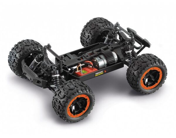 Mit seinem 4WD-Wellenantrieb, der unabhängigen Doppelquerlenkeraufhängung, einstellbaren Gewindefahrwerken und 4-Gang-Differentialen vorne und hinten klettert der Slayer über alle Geländearten im Innen- und Außenbereich und bietet Ihnen überall Spaß! Dank der Schutzabdeckung, des Servo-Sparers und der wasserdichten Elektronik müssen Sie sich keine Sorgen machen, dass Pfützen oder Schmutz im Weg stehen!