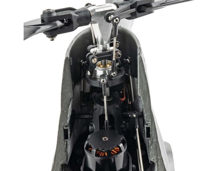 Digitale, zyklische Servos mit Metallgetriebe, ein Aluminium-Rotorkopf-Mittelteil und Hauptrotorblätter aus Kohlefaser sorgen für hervorragende Haltbarkeit und präzise Steuerung.