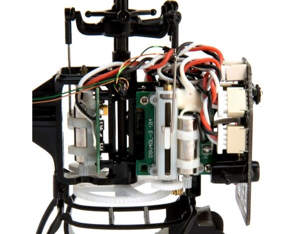 A new flight controller comes totally re-tuned from the ground up improving AS3X® stability, an improved SAFE® mode with angle demand, and an improved panic recovery. On top of that, the SAFE Z altitude control utilizes the on-board accelerometer to keep the heli at a consistent altitude. With its vertically mounted flight controller, it significantly improves damping and removes vibration to the gyro. What you get is a heli with incredible control and performance and the ability to execute dazzling 3D maneuvers. Linear servos deliver the muscle for impressive control authority while the 45C LiPo flight battery produces efficient power for 3D flight.