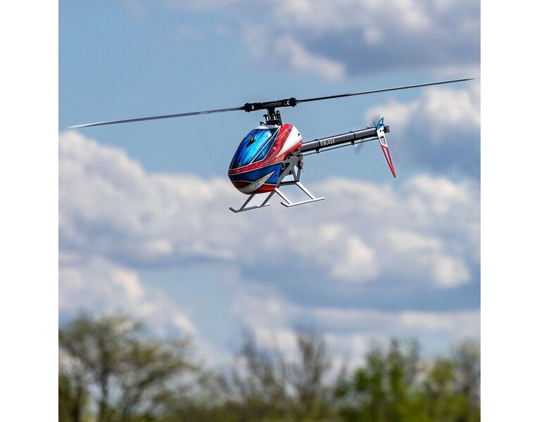 Ein optionaler 4730-350kV Motor zusammen mit anderen Heckriemenscheiben und längeren 115mm Heckrotorblättern sind separat für diejenigen erhältlich, die Scale-, Sport- und Low-Head-Speed-3D-Fliegen (LH3D) mit längeren Flugzeiten bevorzugen. Es gibt auch eine optionale orange lackierte Haube sowie eine Heckflosse aus Kohlefaser und schwarze Kufen für diejenigen, die ein anderes Aussehen bevorzugen.