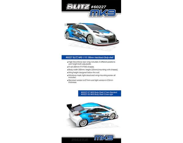 BL6022707 BLITZ MK9 1/10 190mm Fronti Tourenwagen Karosserie 0,7mm inkl. Heckspoiler