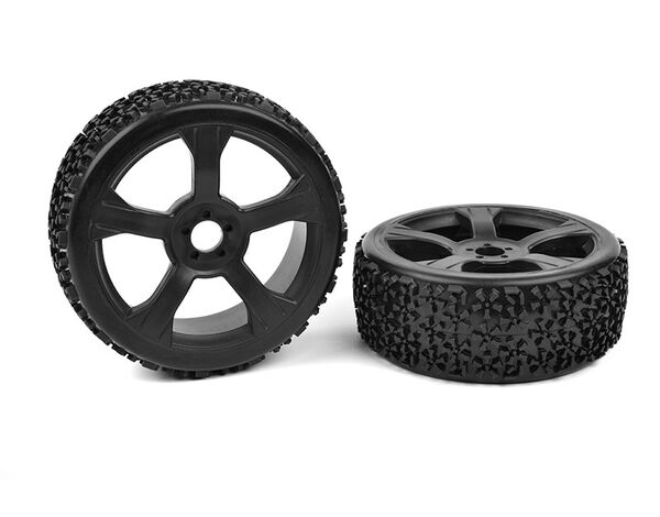 Team Corally Off-Road 1/8 Buggy Tires - Ninja - Low Profile - Glued on Black Rims - 1 pair