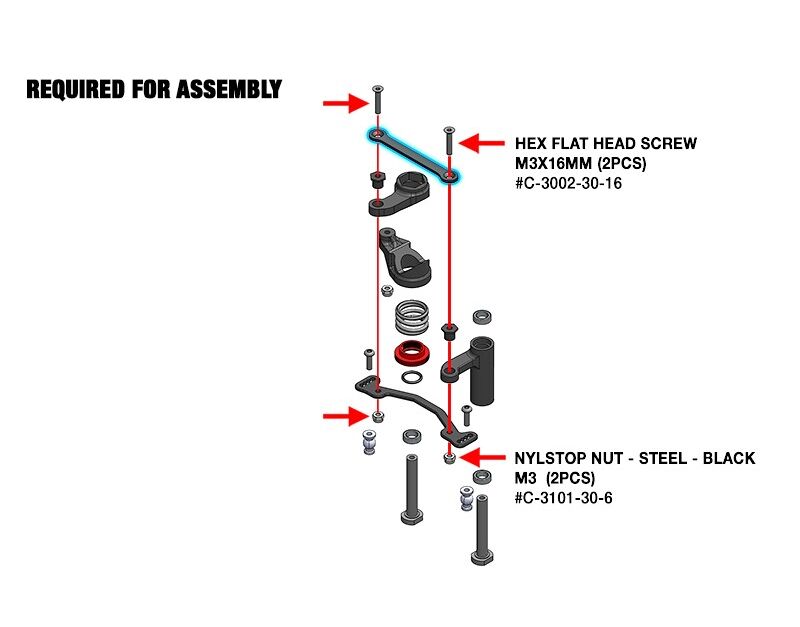 C-00180-831 Team Corally - Steering Rack - Dual Stiffener - Swiss Made 7075 T6 - 2mm - Hard Anodised - Black - Made in Italy - 1 pc