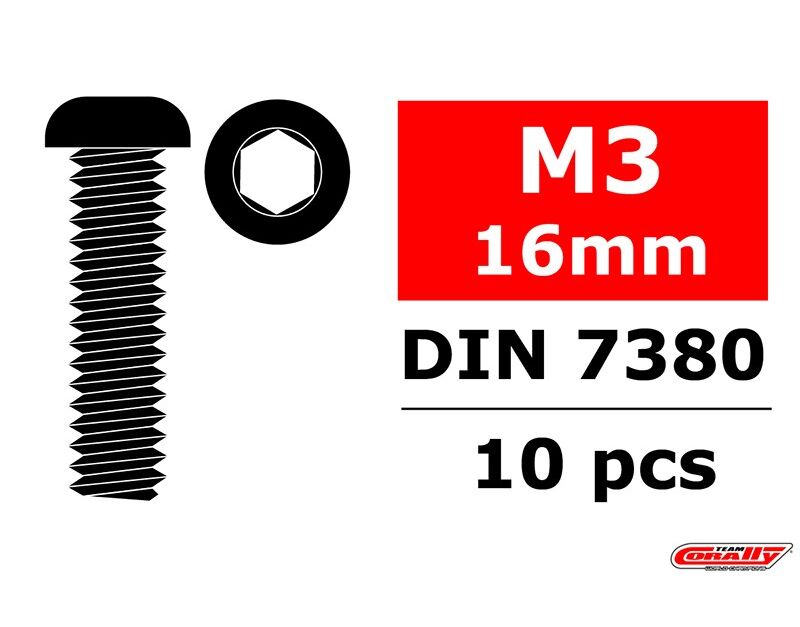 C-3003-30-16 Team Corally - Stahl Schrauben M3 x 16mm - Innensechskant Linsenkopf - 10 St