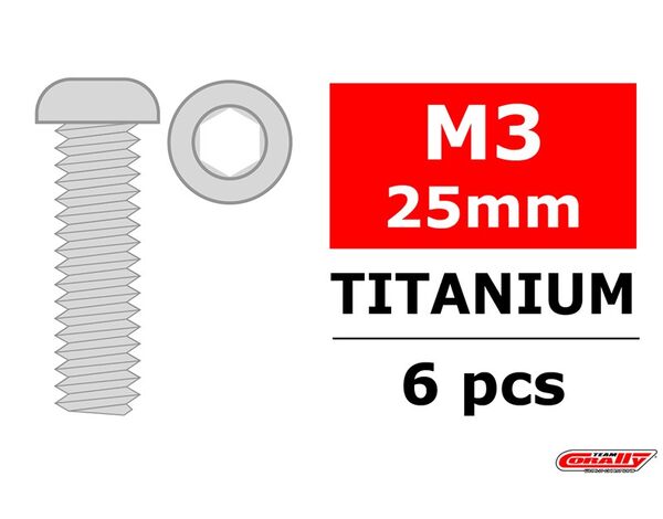 C-3023-30-25 Team Corally - Titanschrauben M3 x 25mm - Innensechskant Linsenkopf - 6 St