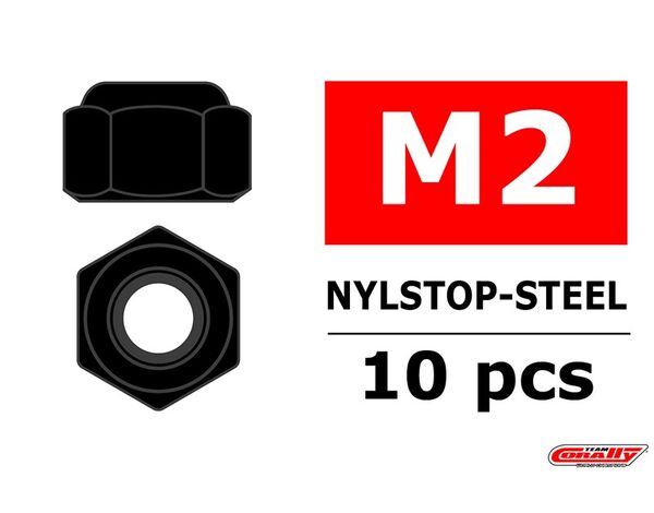 C-3101-20-6 Team Corally - Stahl Nylstop Muttern M2 - Schwarz passiviert - 10 St