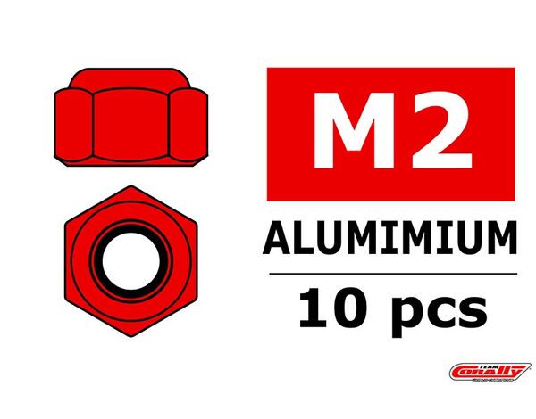 C-3106-20-5 Team Corally - Aluminium Sechskantmutter Selbstsichernd - M2 - Rot - 10 St