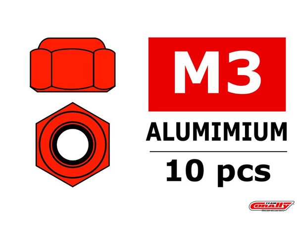 C-3106-30-5 Team Corally - Aluminium Sechskantmutter Selbstsichernd - M3 - Rot - 10 St