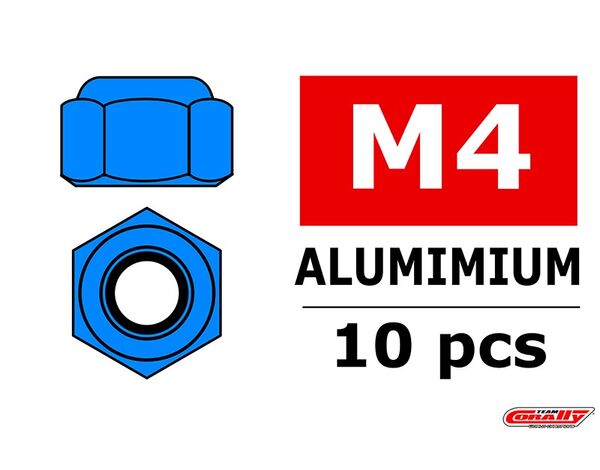 C-3106-40-4 Team Corally - Aluminium Sechskantmutter Selbstsichernd - M4 - Blau - 10 St