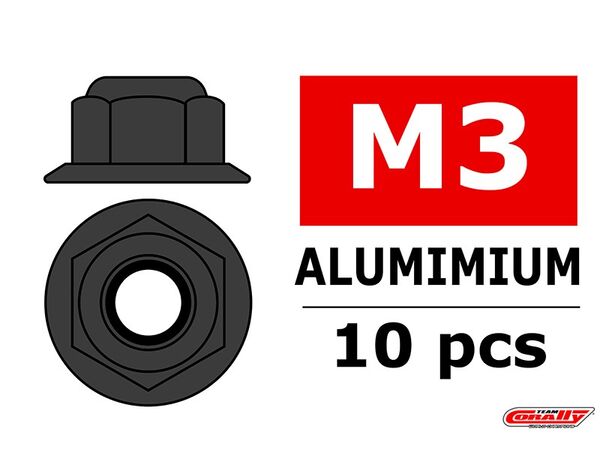 C-3107-30-3 Team Corally - Aluminium Sechskantmutter Selbstsichernd - M3 - mit Bund - Gun Metal - 10 St