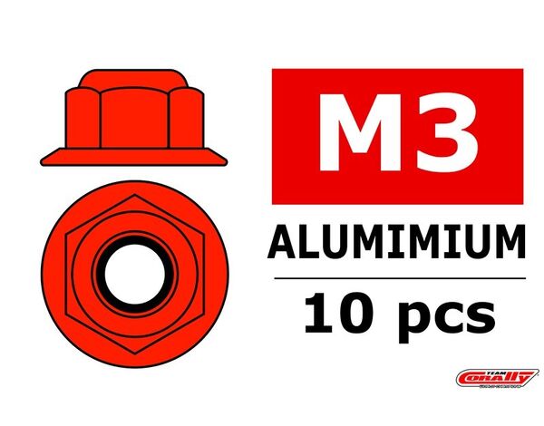 C-3107-30-5 Team Corally - Aluminium Sechskantmutter Selbstsichernd - M3 - mit Bund - Rot - 10 St