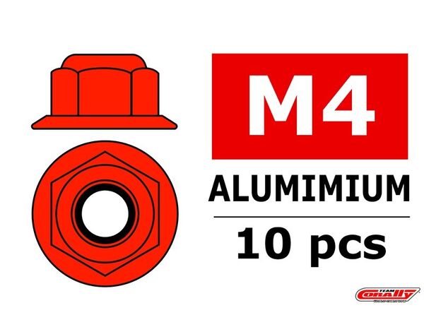 C-3107-40-5 Team Corally - Aluminium Sechskantmutter Selbstsichernd - M4 - mit Bund - Rot - 10 St