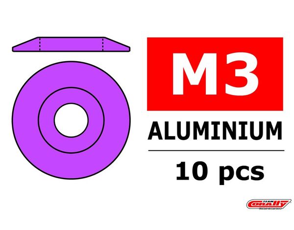 C-3212-30-2 Team Corally - Aluminium Unterlegscheibe - for M3 Linsenkopfschrauben - AD=15mm - Violet - 10 St