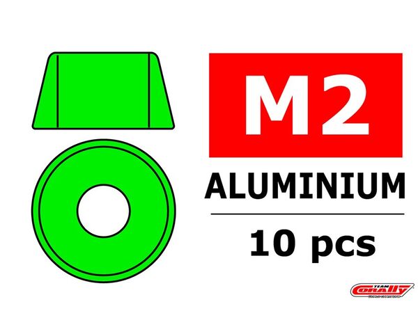 C-3214-20-1 Team Corally - Aluminium Unterlegscheibe - für M2 Zylinderkopfschrauben - AD=6mm - Grün - 10 St