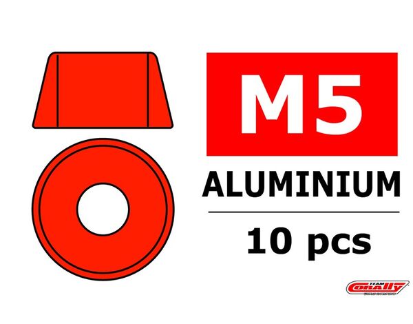 C-3214-50-5 Team Corally - Aluminium Unterlegscheibe - für M5 Zylinderkopfschrauben - AD=12mm - Rot - 10 St